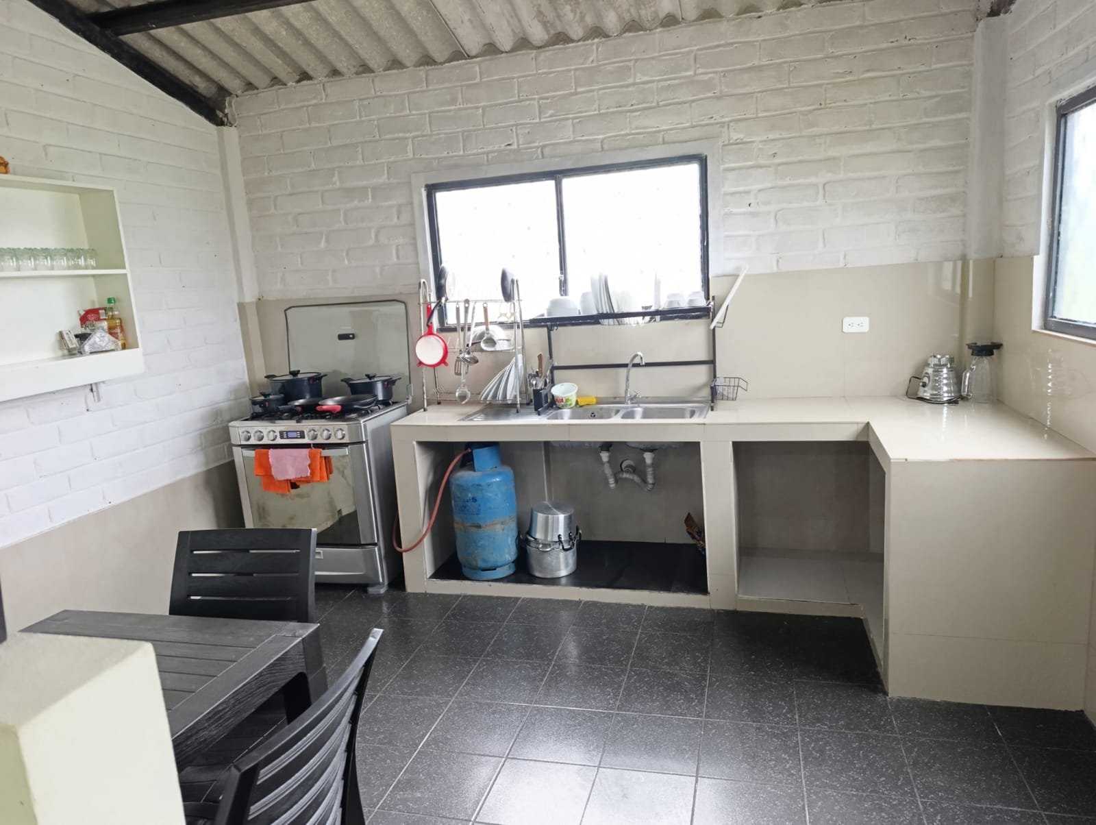 1 chimenea, cocina, comedor